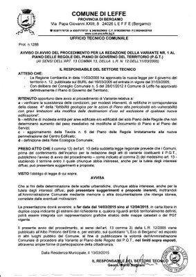 Avviso di avvio del procedimento per la redazione della variante n. 1 al piano delle regole del piano del governo del territorio