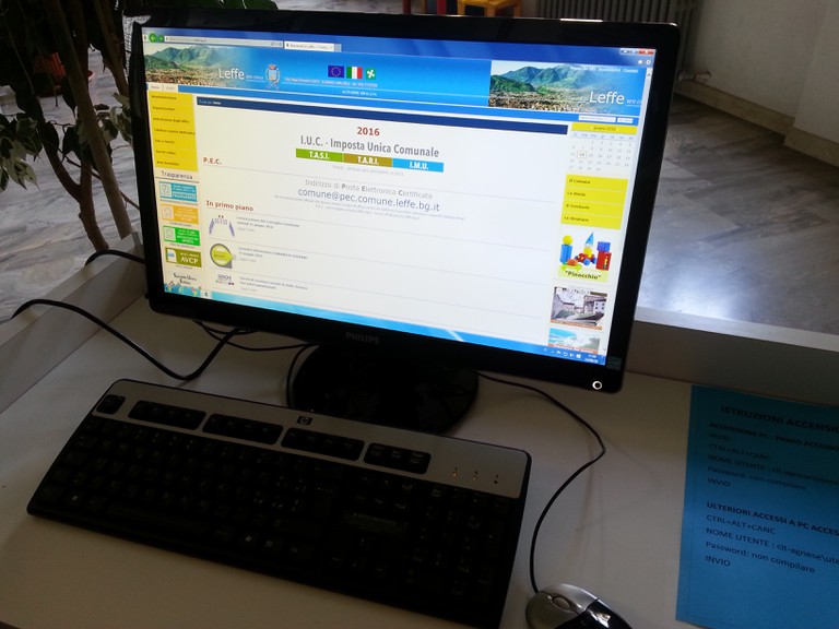 Per rendere questo servizio accessibile a tutti, anche a chi non disponesse di strumenti informatici o fosse temporaneamente impossibilitato ad usufruire della propria postazione, l’Amministrazione del Comune di Leffe, al fine di garantire la massima accessibilità e trasparenza a tutta la cittadinanza, in attuazione del piano di informatizzazione che si è prefissata, informa che ha messo a disposizione una postazione di accesso per poter navigare nel sito web istituzionale dell’Ente. E’ in corso valutazione per implementare l’accesso anche ad altri servizi, con lo spirito di essere sempre più vicini alla cittadinanza.
